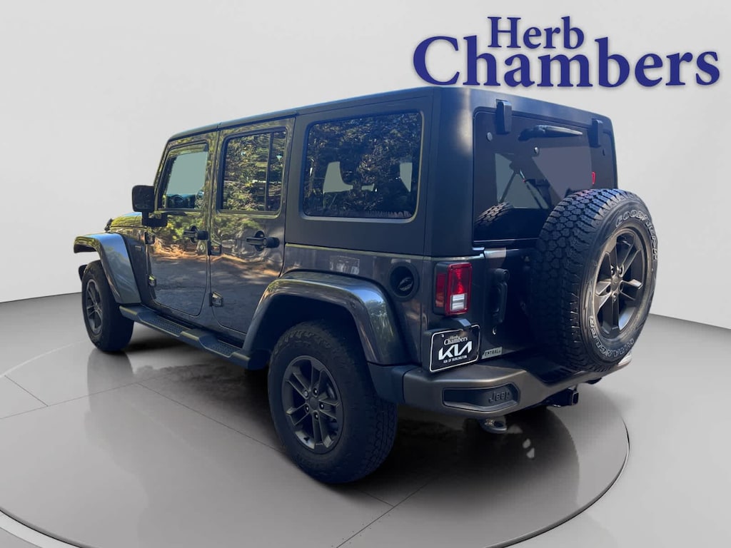 4x4 Jeep 75th Anniversary with Granite Crystal Metallic Clearcoat exterior and Black interior features a V6 Cylinder Engine with 285 HP at 6400 RPM*. 5-Day 100% Money Back Guarantee / 30-Day 1,500 Mile Vehicle Exchange and, A complete Vehicle Portfolio & CarFax. Visit www.herbchamberssmartpricing.com for complete details. Only a Herb Chambers CERTIFIED Pre-Owned vehicle receives a rigorous Multi-Point Inspection This Wrangler Unlimited is priced $900 below J.D. Power Retail. Was $21,999.